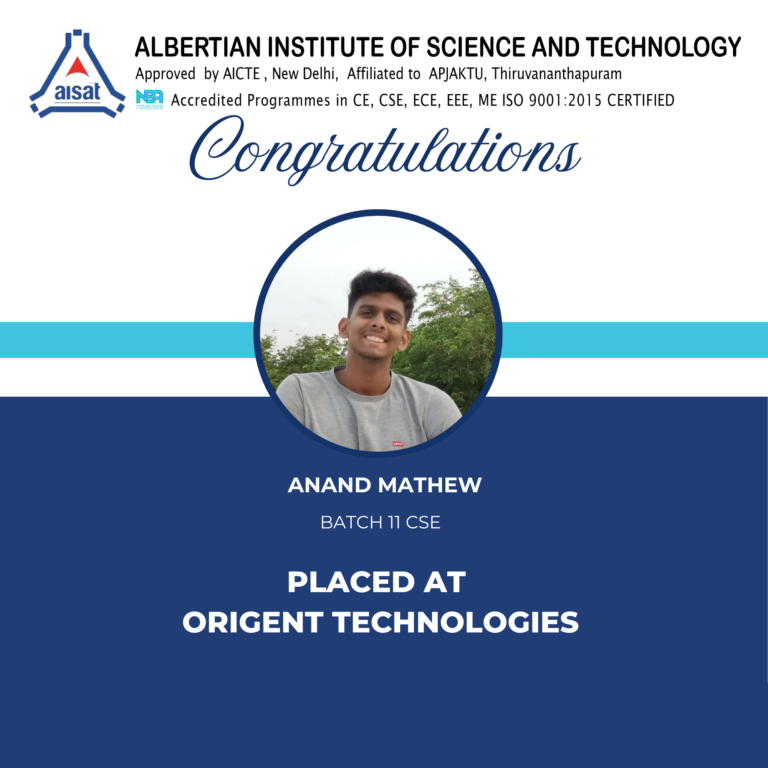 Director – P&T Cell Albertian Institute of Science and Technology Kalamassery, 682022 Website: www.aisat.ac.in/placement